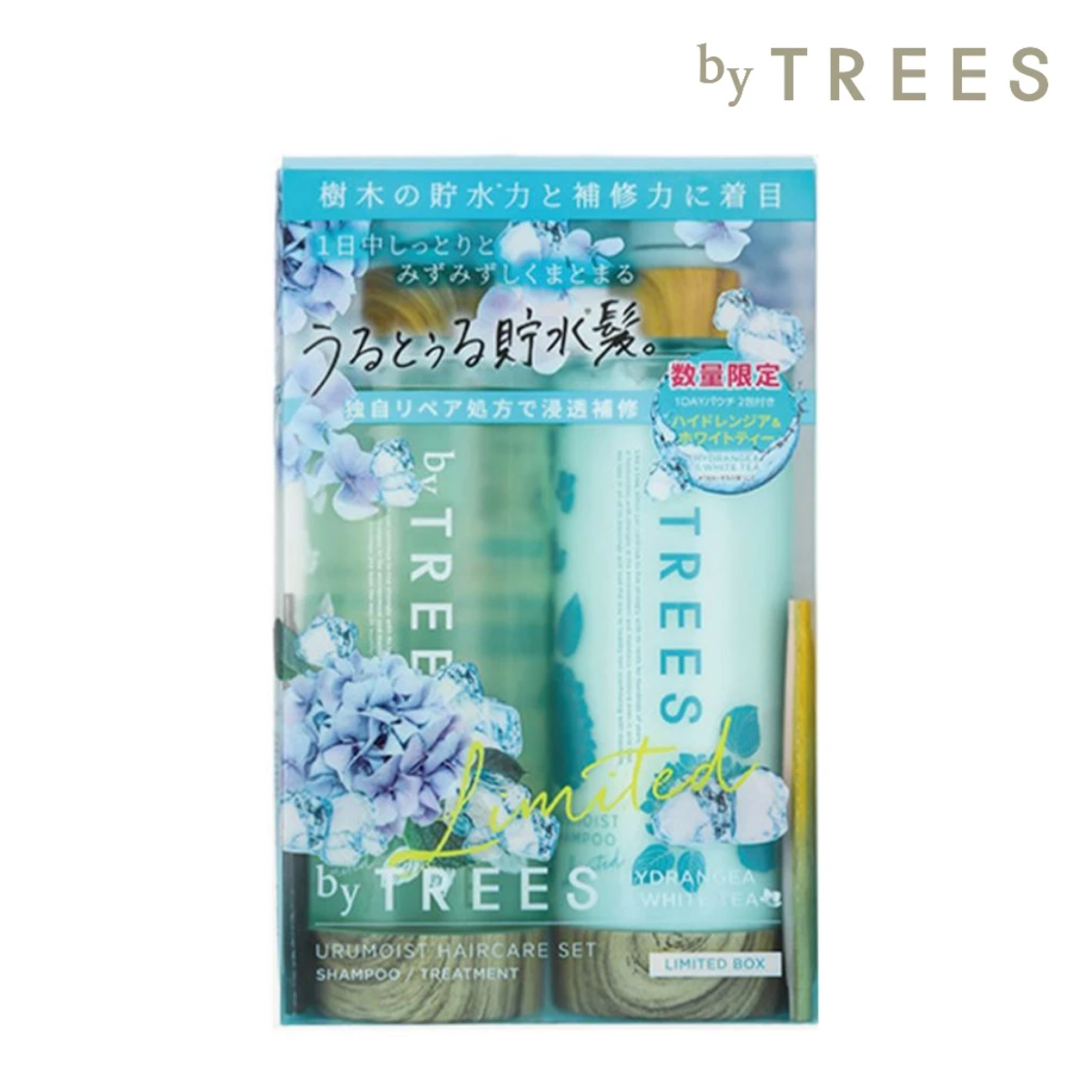 【限定版 byTREES】薄荷涼感洗護髮組 - 白茶&繡球花 byTrees URUMOIST SHAMPOO & TREATMENT Set - Hydrangea & White Tea 450ml+450ml